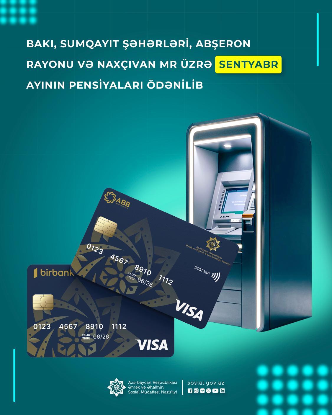 Bakı, Sumqayıt şəhərləri, Abşeron rayonu və Naxçıvan MR üzrə sentyabr ayının pensiyaları ödənilib