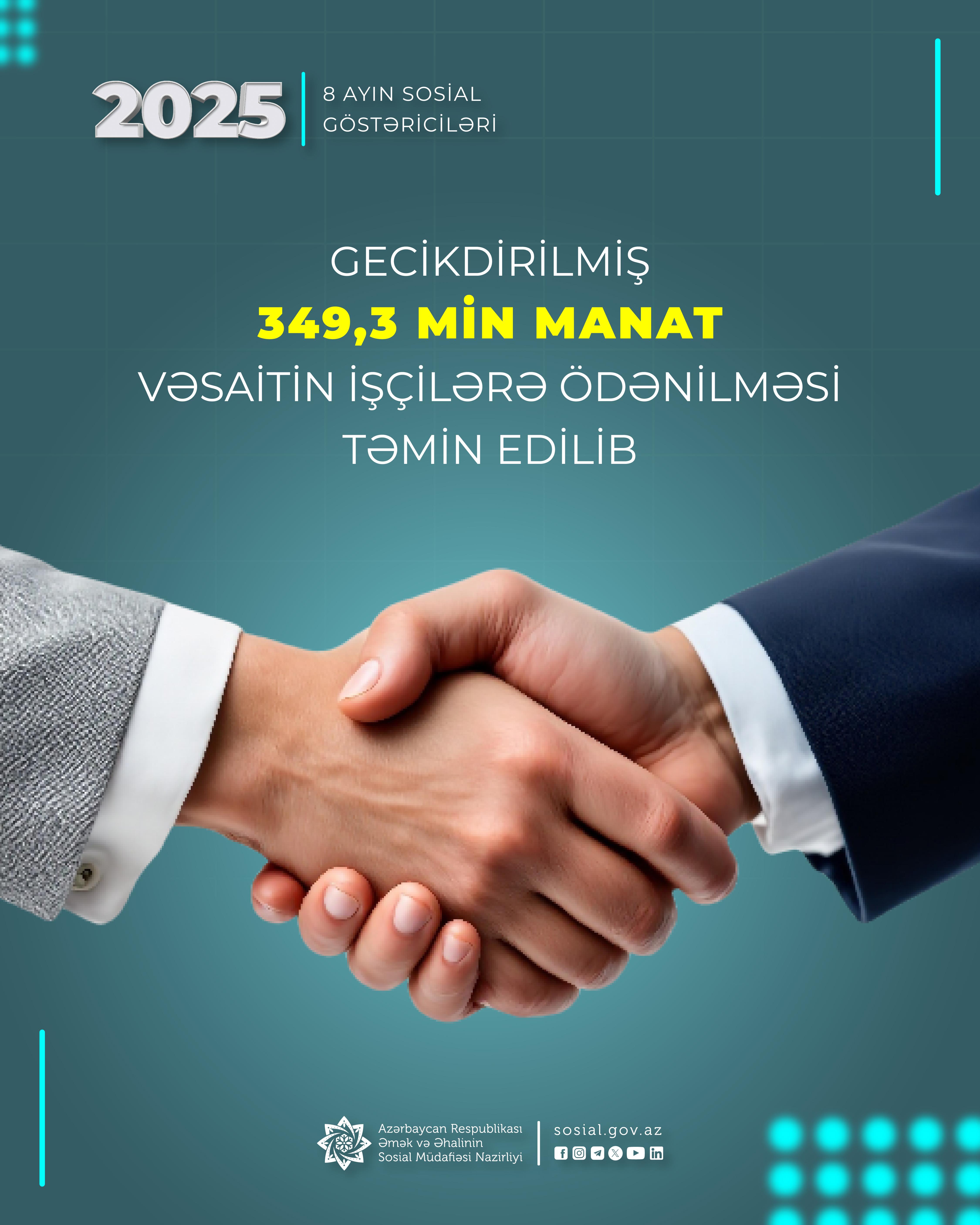 Gecikdirilmiş 349,3 min manat vəsaitin işçilərə ödənilməsi təmin olunub
