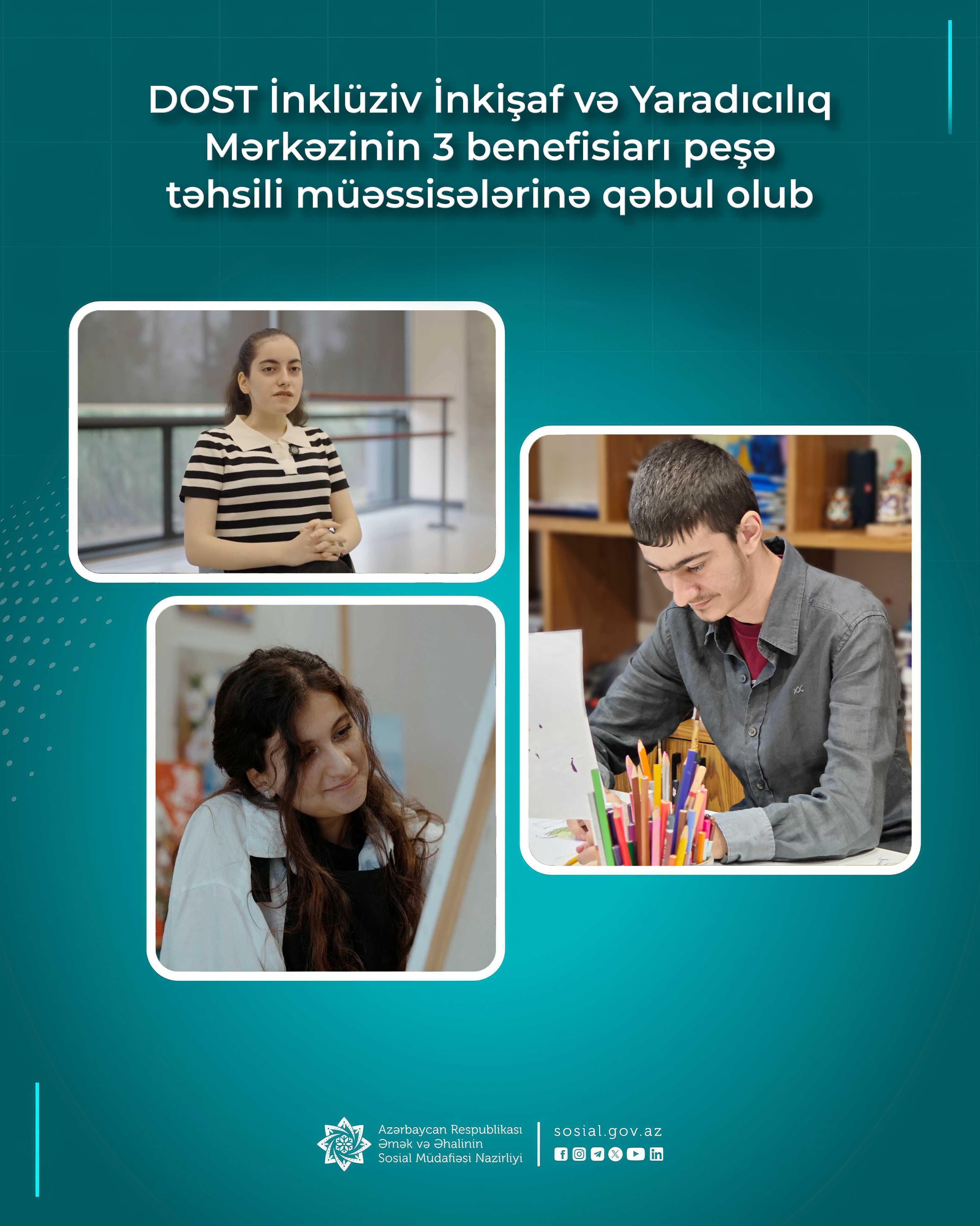 DOST İnklüziv İnkişaf və Yaradıcılıq Mərkəzinin 3 benefisiarı peşə təhsili müəssisələrinə qəbul olub
