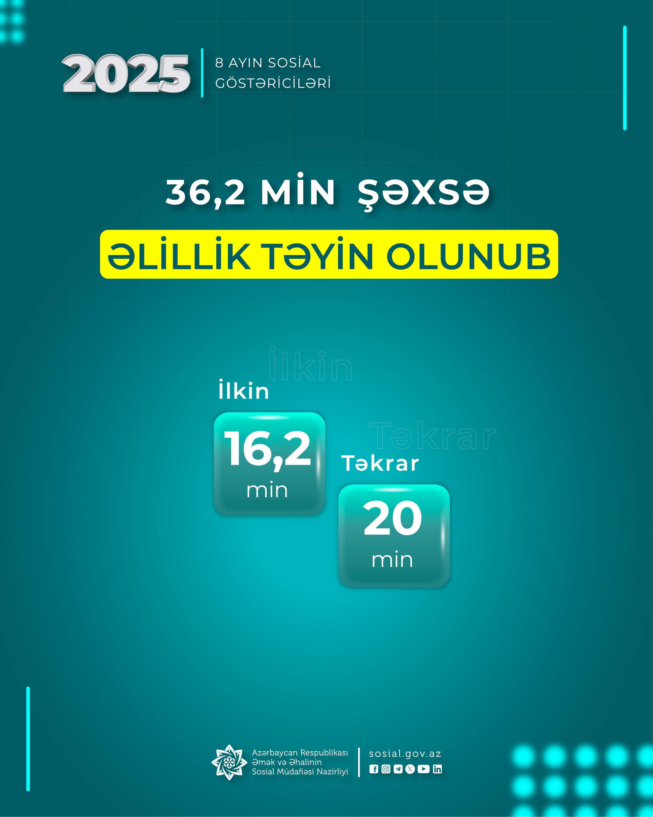 Yanvar-avqust aylarında 36,2 min şəxsə əlillik təyin olunub