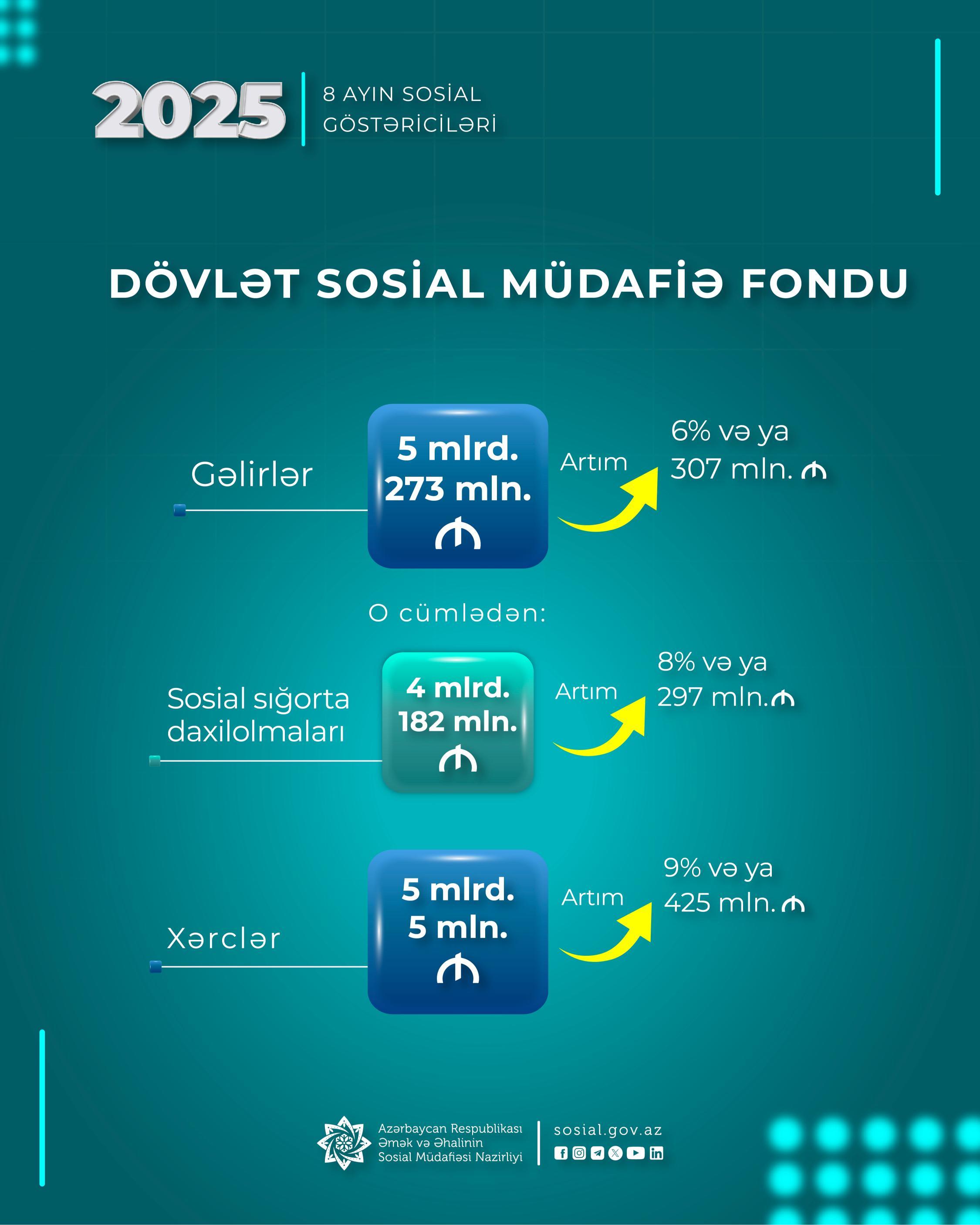 Yanvar-avqust aylarında DSMF-nin xərcləri 9 faiz və ya 425 mln. manat artaraq 5 mlrd. 5 mln. manat olub