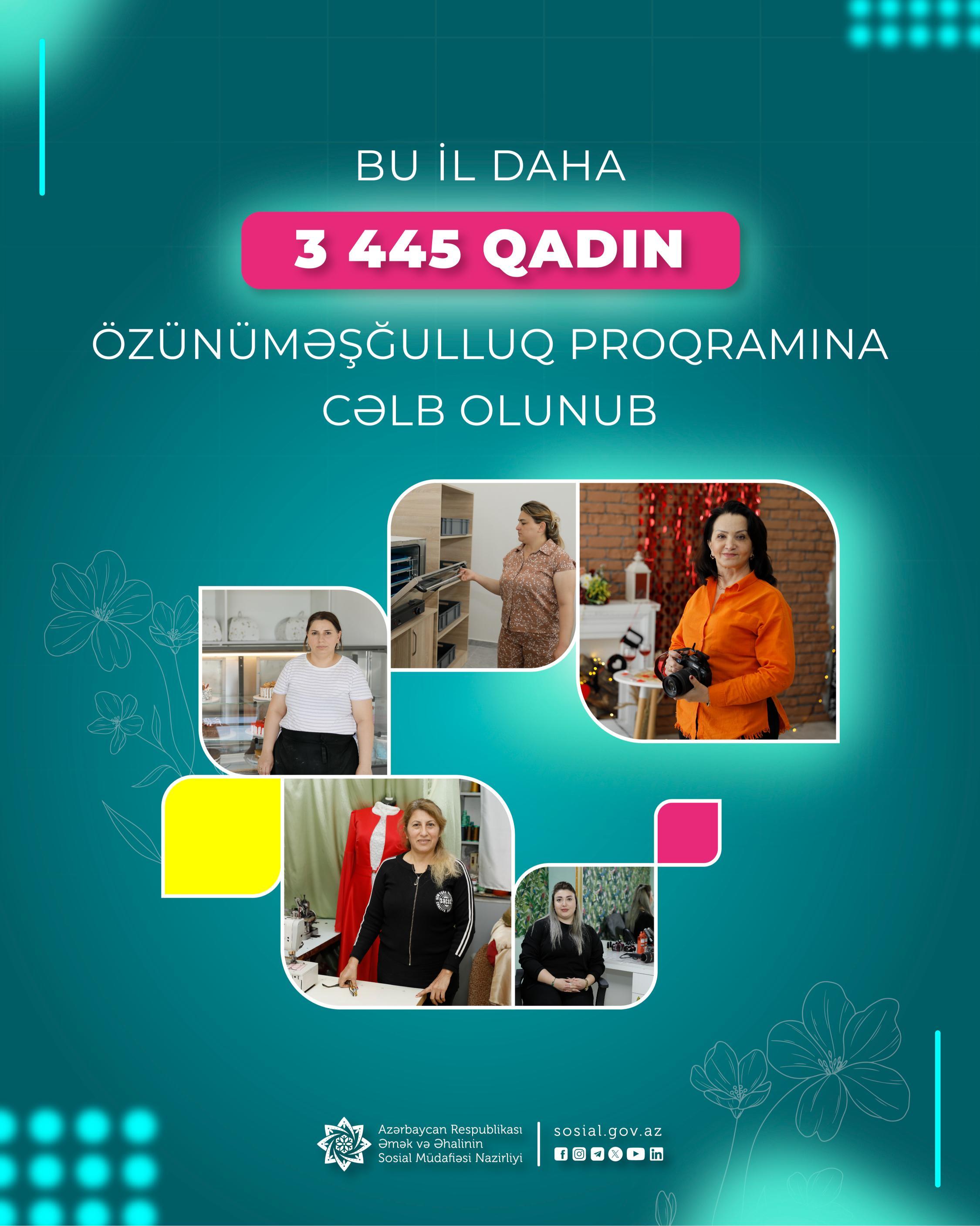 Bu ilin ötən dövründə daha 3445 qadın özünüməşğulluq proqramına cəlb olunub