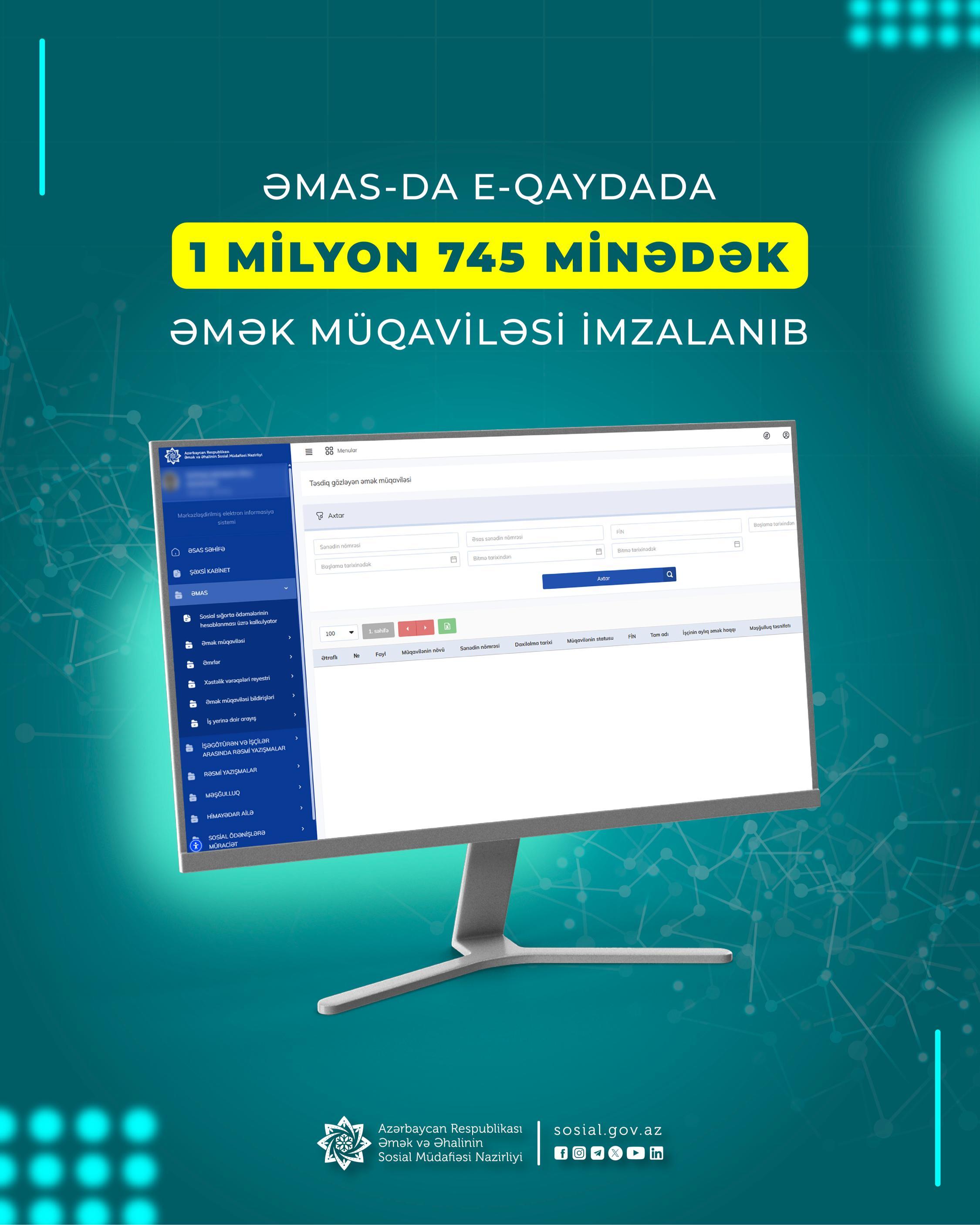 ƏMAS-da e-qaydada artıq 1 milyon 745 minədək əmək müqaviləsi imzalanıb