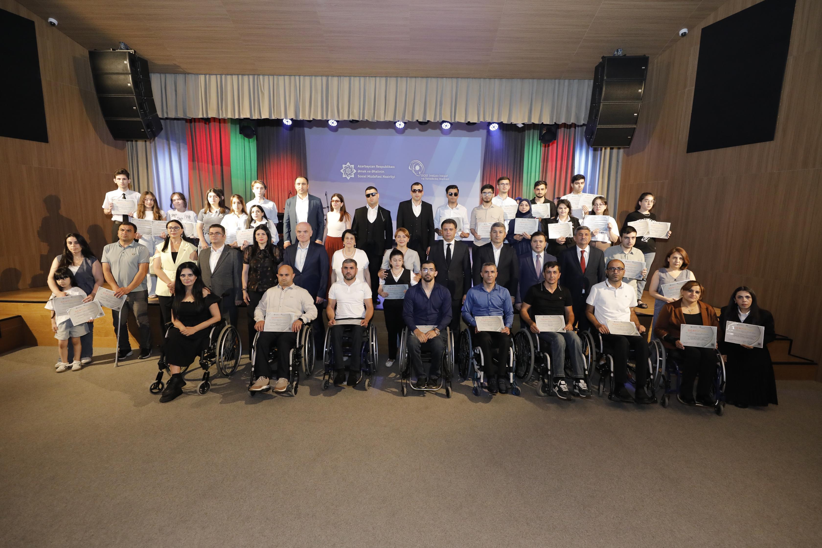DOST İnklüziv İnkişaf və Yaradıcılıq Mərkəzində təlimləri uğurla bitirən benefisiarlara sertifikatlar təqdim olunub