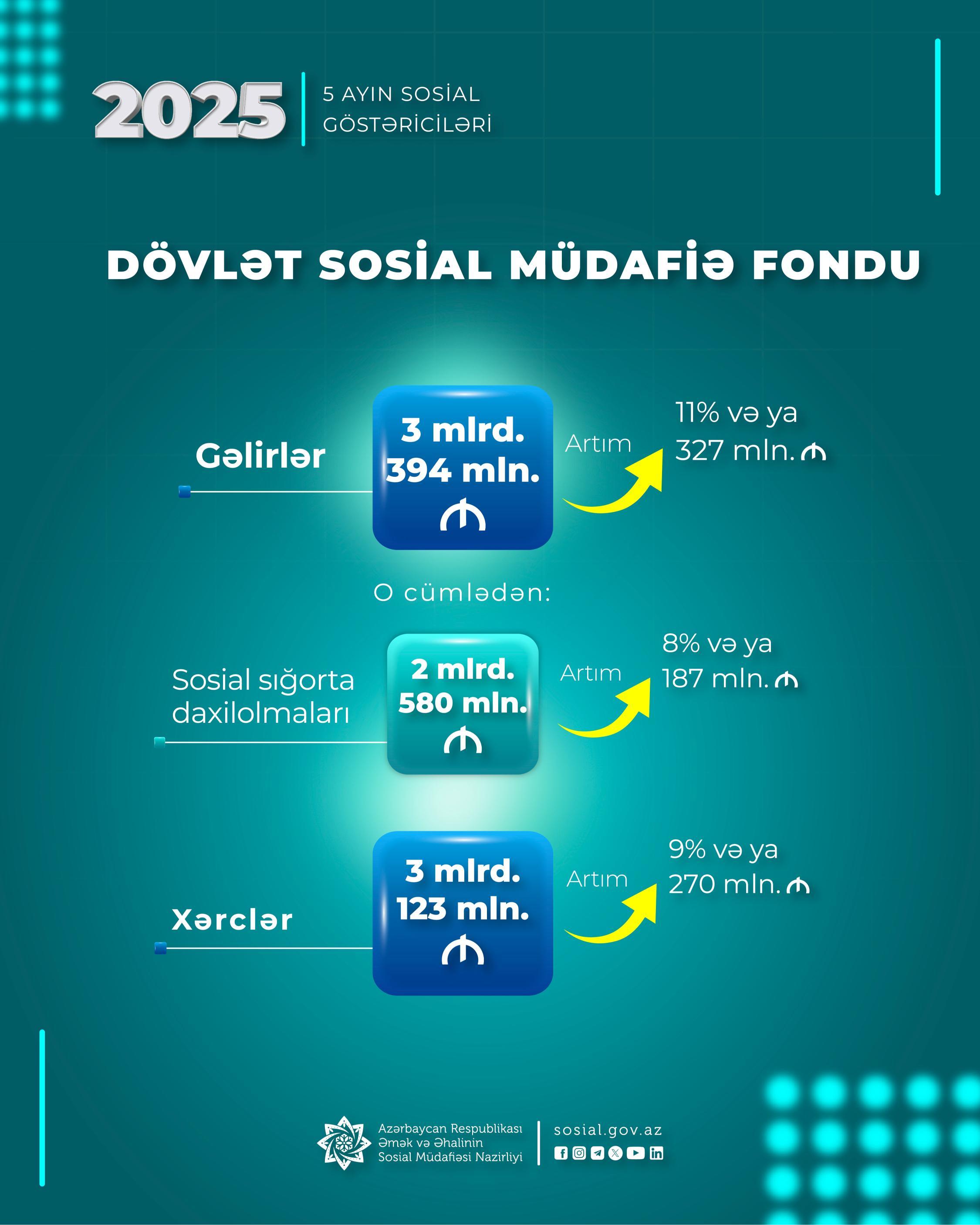Yanvar-may aylarında DSMF-nin xərcləri 9 faiz və ya 270 mln. manat artaraq 3 mlrd. 123 mln. manat olub