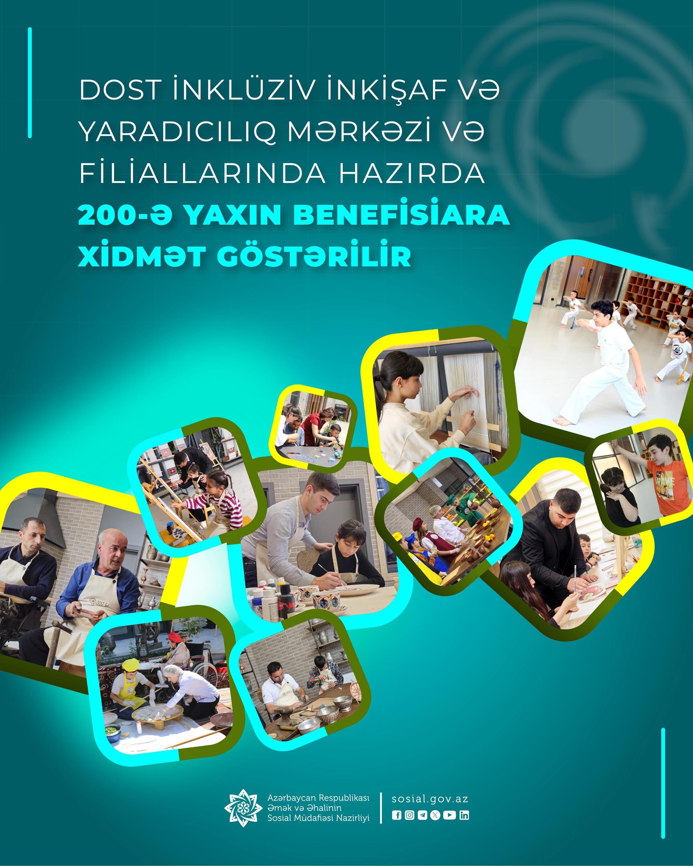 DOST İnklüziv İnkişaf və Yaradıcılıq Mərkəzi və filiallarında hazırda 200-ə yaxın benefisiara xidmət göstərilir