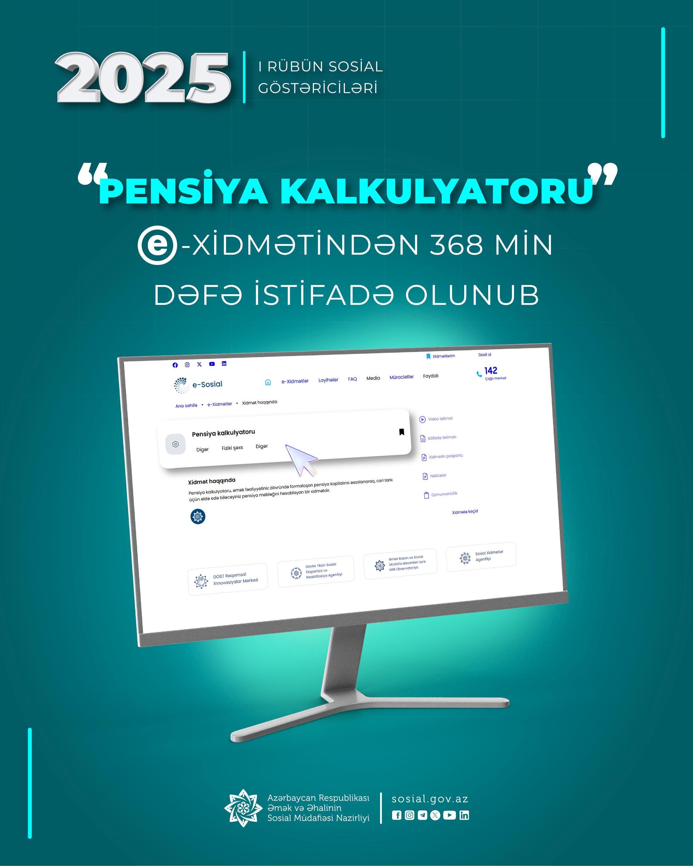 Birinci rübdə “Pensiya kalkulyatoru” e-xidmətindən 368 min dəfə istifadə olunub
