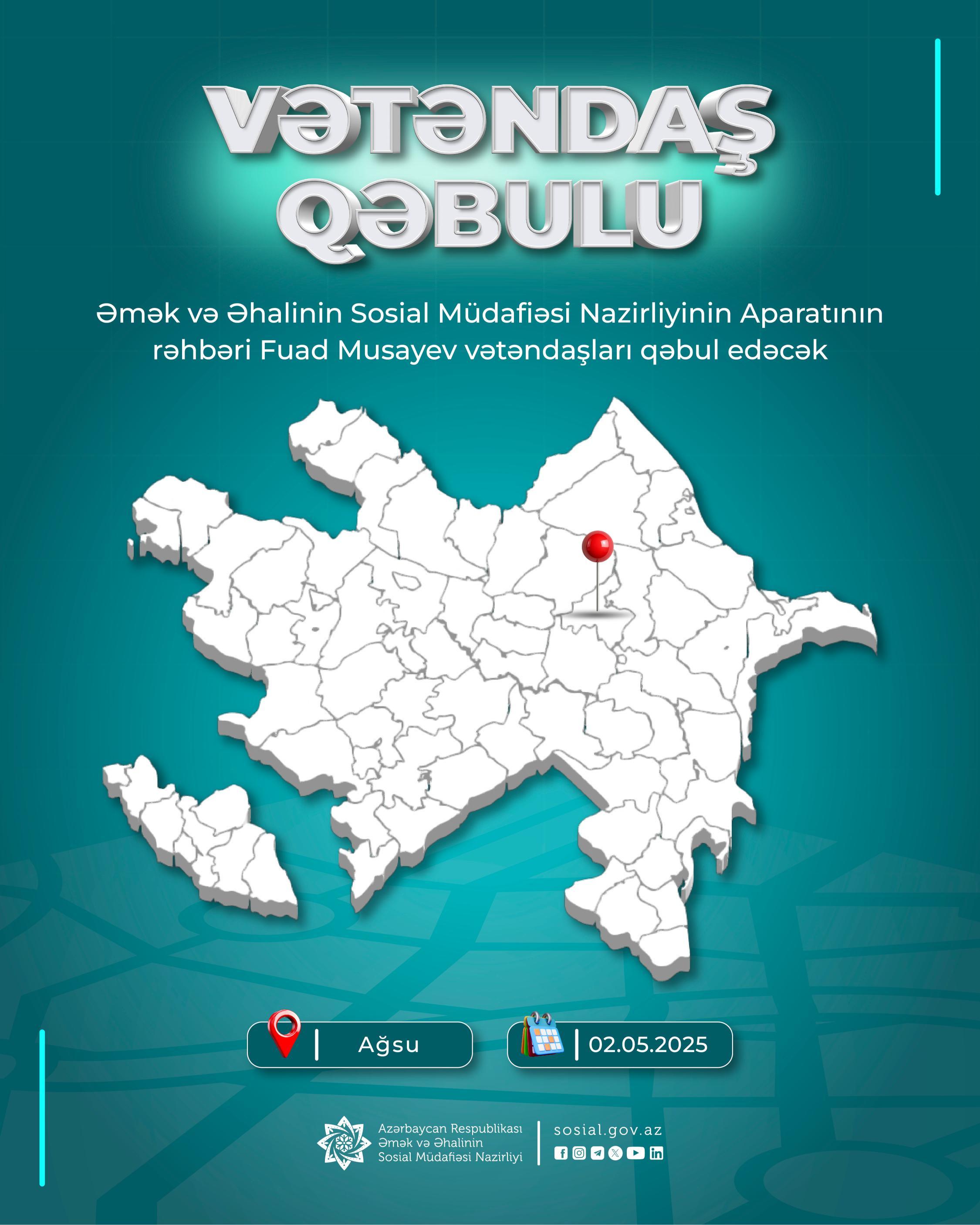 Nazirliyin Aparatının rəhbəri Fuad Musayev Ağsu rayonunda vətəndaşları qəbul edəcək