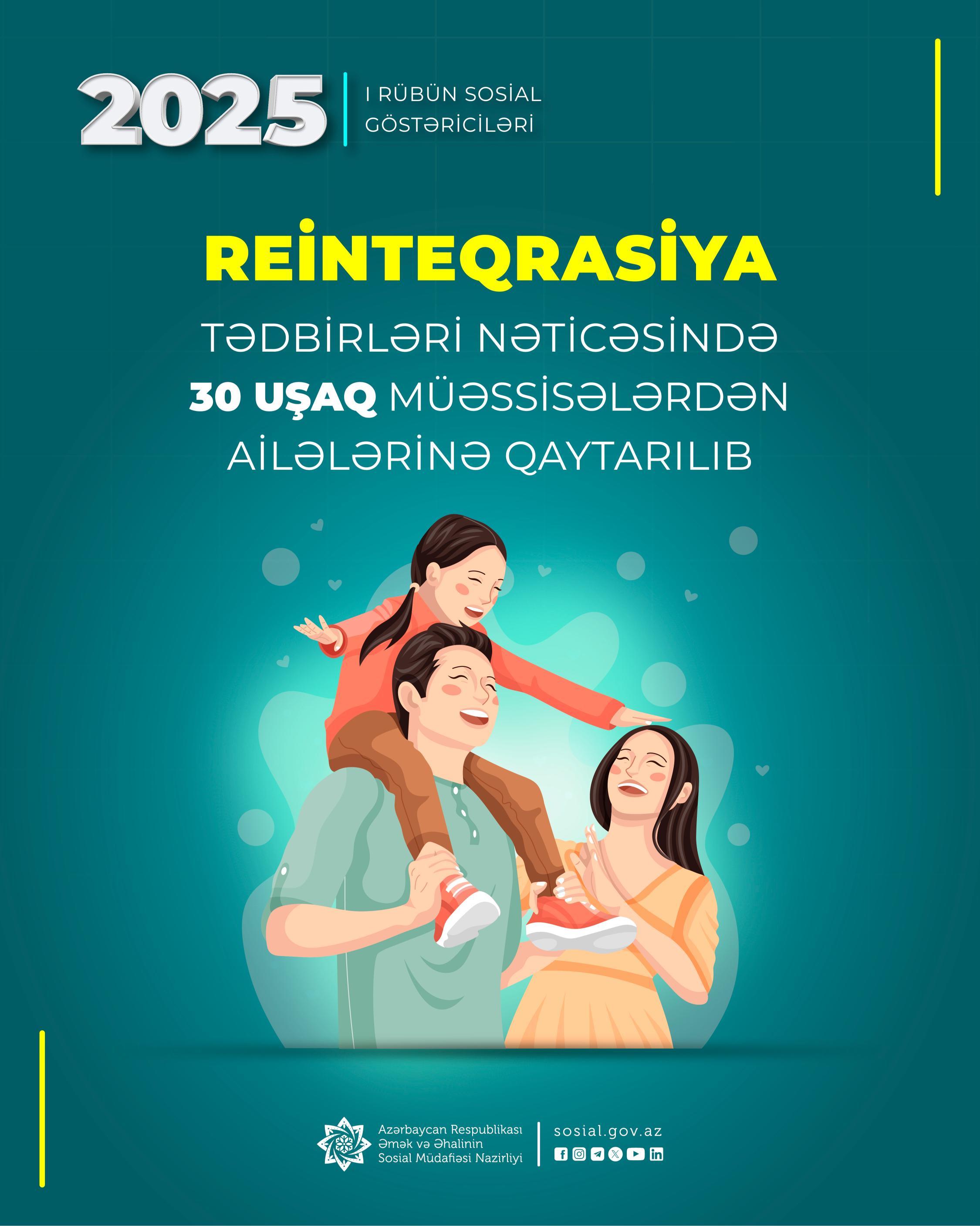 Birinci rübdə reinteqrasiya tədbirləri nəticəsində 30 uşaq müəssisələrdən ailələrinə qaytarılıb