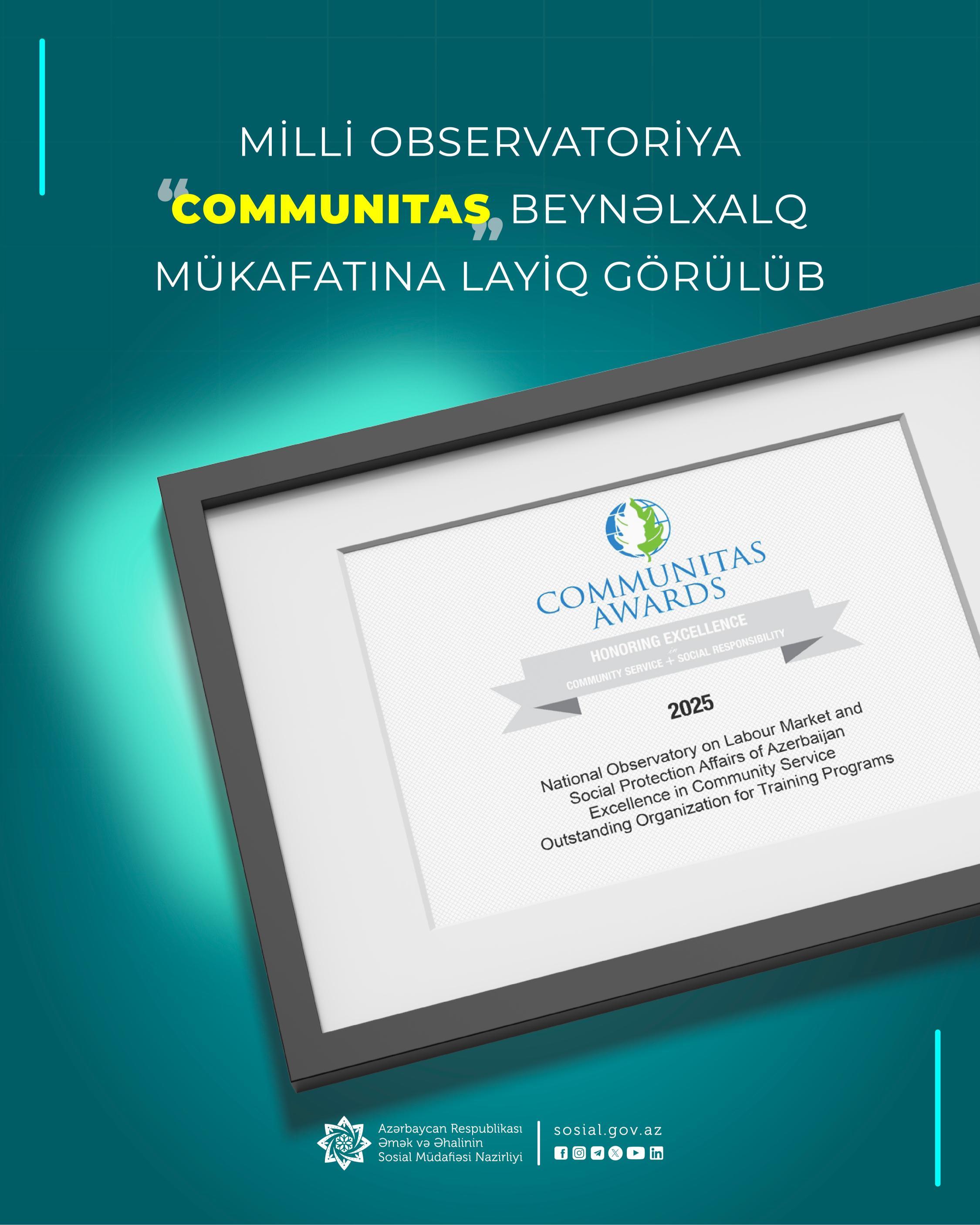 Milli Observatoriya “Communitas” beynəlxalq mükafatına layiq görülüb