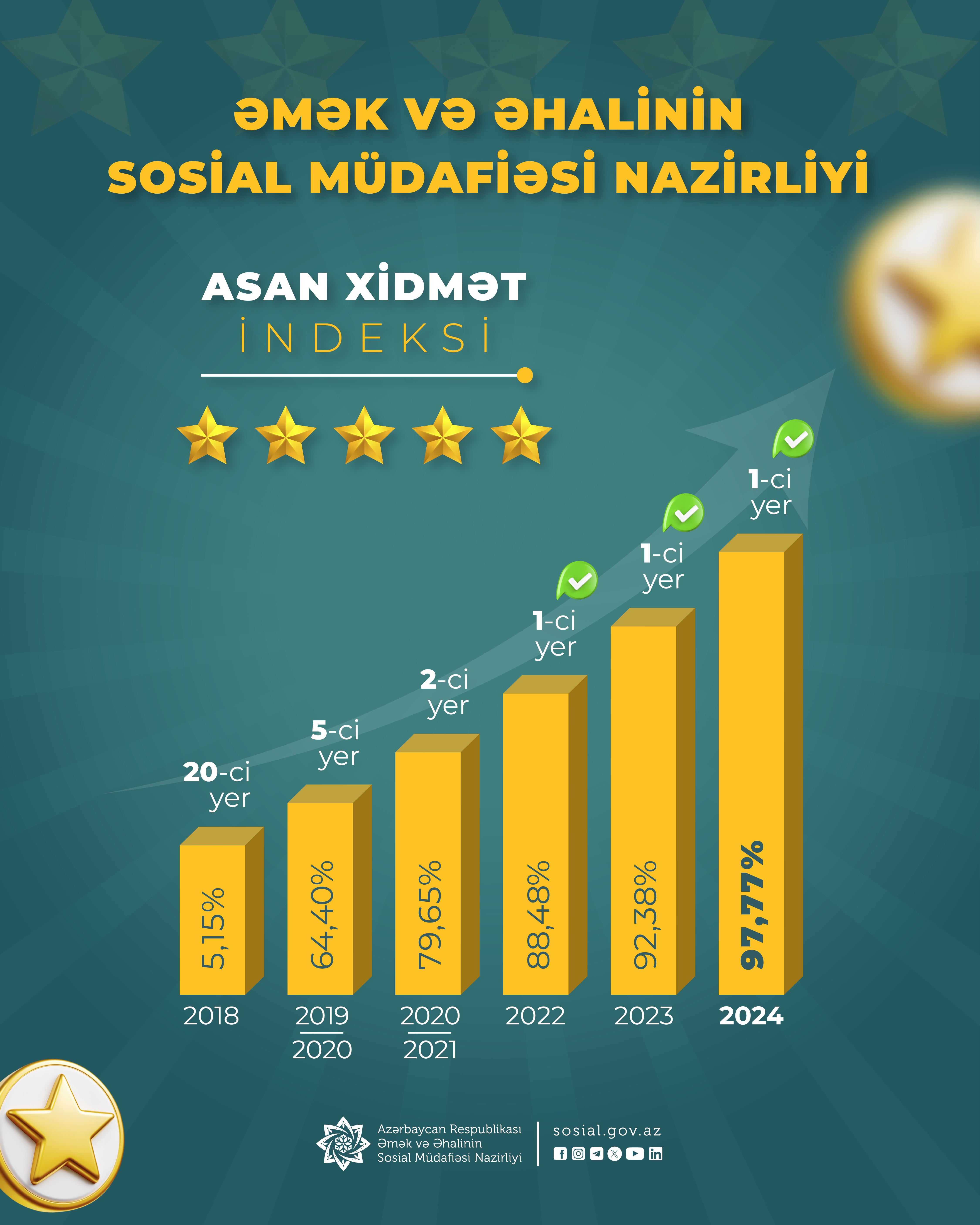 Əmək və Əhalinin Sosial Müdafiəsi Nazirliyi “ASAN xidmət indeksi” üzrə qiymətləndirmədə bu dəfə də 1-ci yeri tutdu