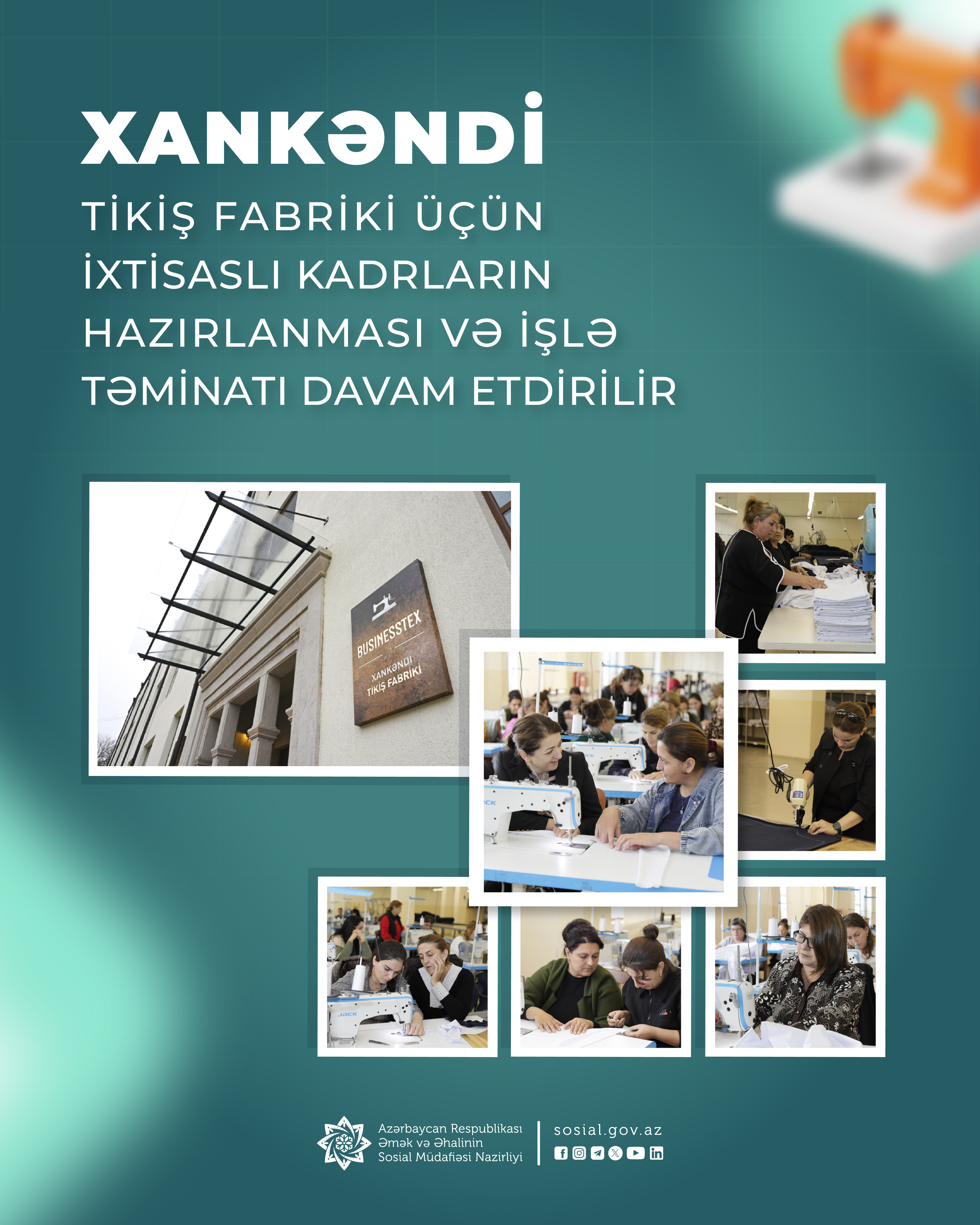 Dövlət Məşğulluq Agentliyi Xankəndi tikiş fabriki üçün ixtisaslı kadrların hazırlanması və işlə təminatını davam etdirir