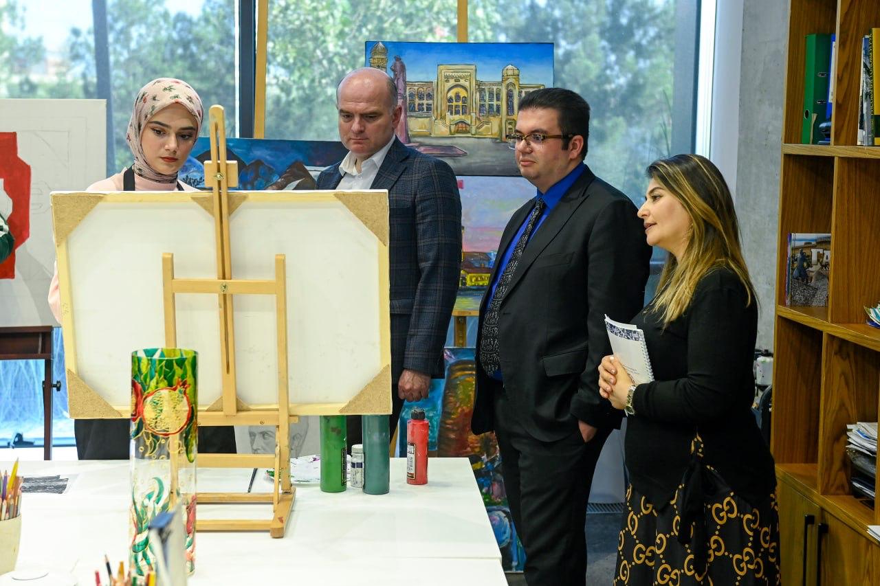 Görüş çərçivəsində şura sədri və üzvləri Mərkəzin fəaliyyəti, peşə-yaradıcılıq studiyalarında təlim prosesi ilə tanış olublar.