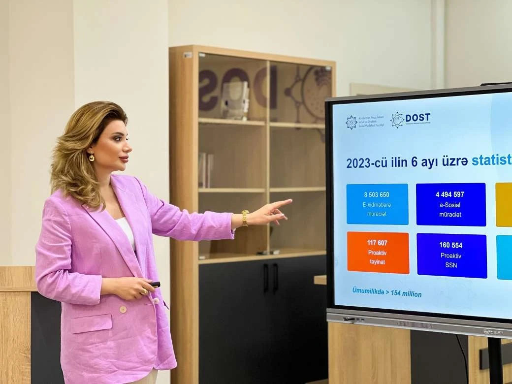 Əmək və Əhalinin Sosial Müdafiəsi Nazirliyinin DOST Rəqəmsal İnnovasiyalar Mərkəzində (DOST RİM) Nazirlik yanında İctimai şuranın üzvləri ilə görüş olub. Görüşdə DOST RİM-in direktoru Kənan Əkpərov son illər dövlət sosial xidmətlərinin elektronlaşdırılması istiqamətində əldə olunan uğurları diqqətə çatdırıb. Nazirliyin 153 xidmətindən 140-dan və ya 90 faizdən çoxunun elektronlaşdırıldığı, e-sistem üzərindən 51 proaktiv xidmətin fəaliyyət göstərdiyi bildirilib.
