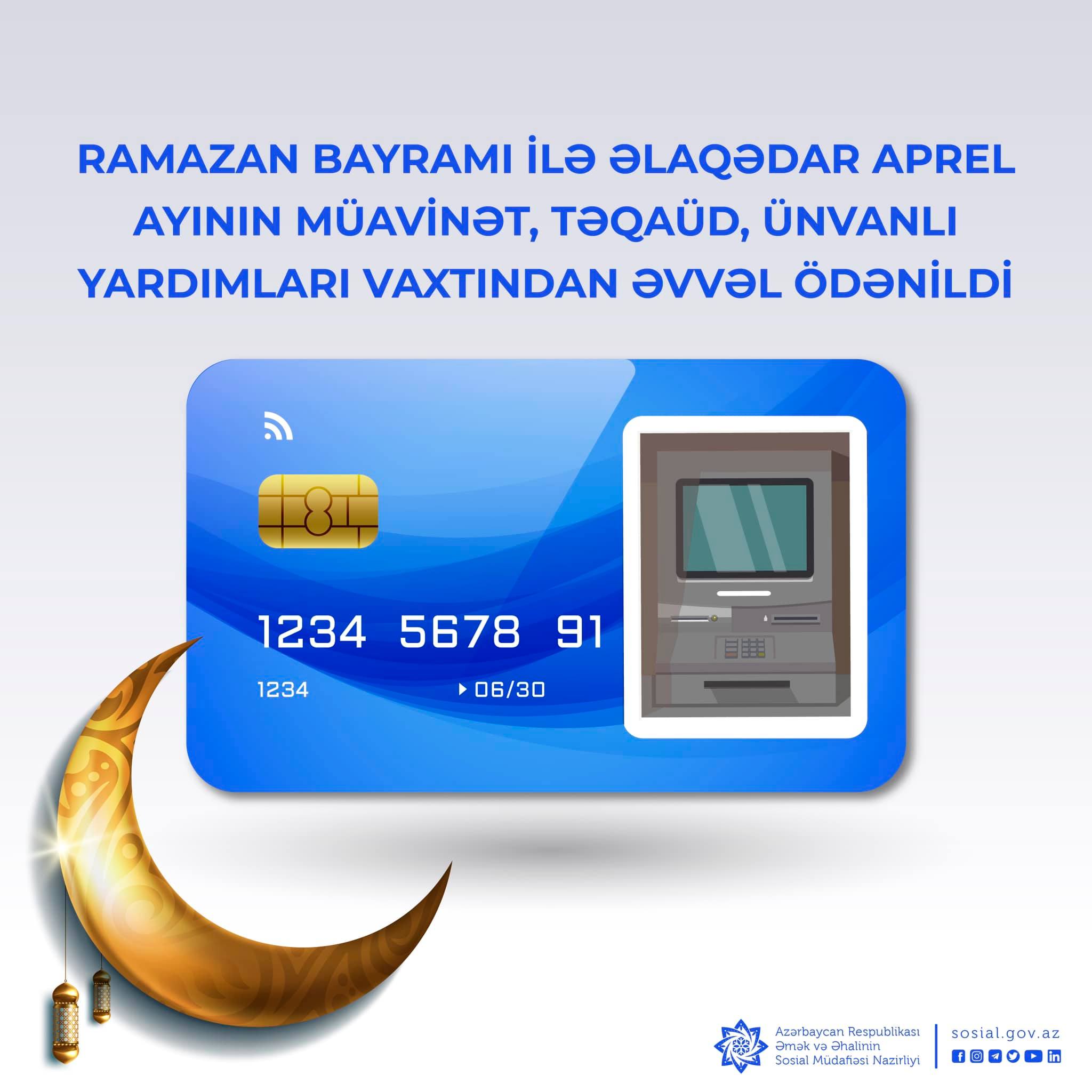 On April 7, Baku, Sumgayit cities, Absheron region, and on April 14 in other regions of the country, as well as pensioners who received supplements for length of service, were paid pensions for the month of April.