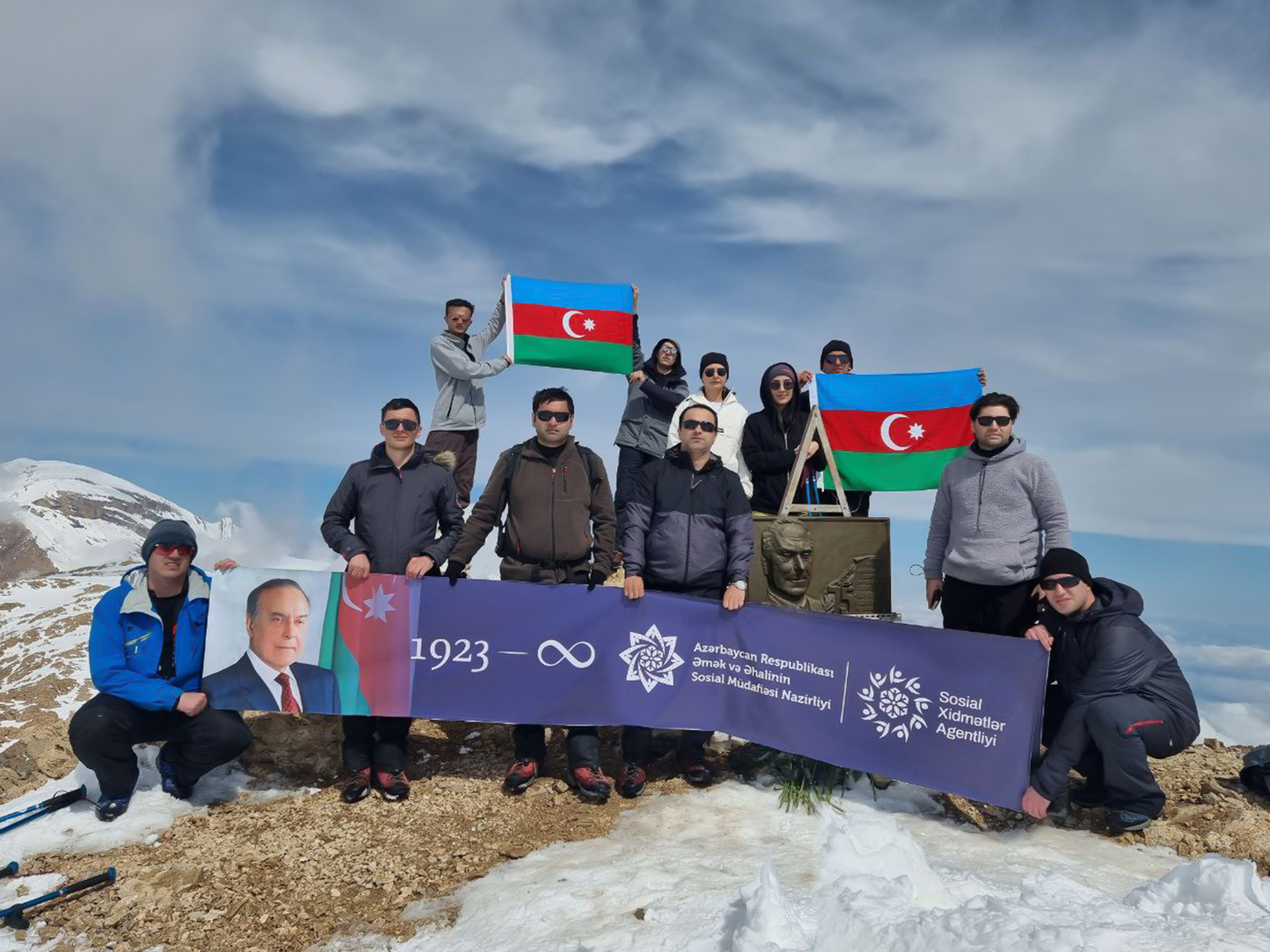 On the occasion of the 100th anniversary of the birth of the national leader Heydar Aliyev, a group of 12 people, consisting of employees of the Social Services Agency under the Ministry of Labor and Social Protection of the Population and other institutions of the Ministry, marched to the Heydar Aliyev peak.