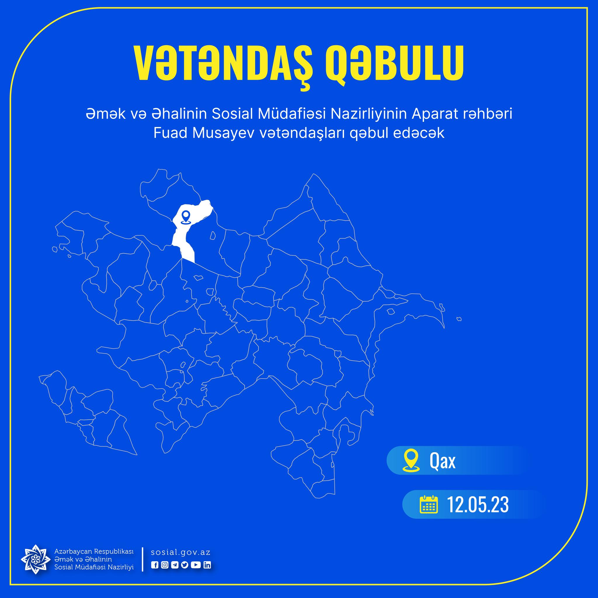 Head of administration of the Minister of Labor and Social Protection of Population Fuad Musayev will receive residents of Gakh on 12 May.