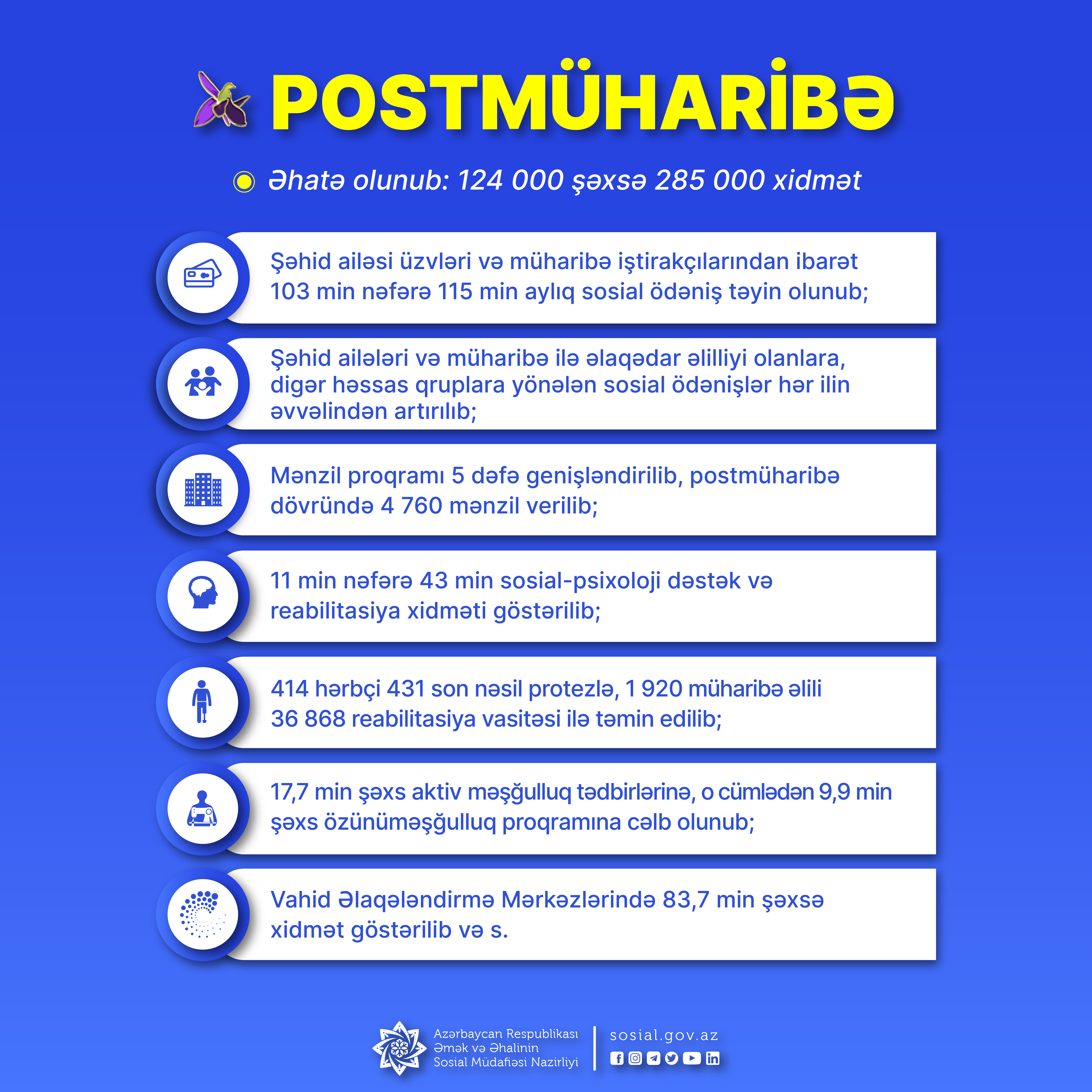 services were provided to 83.7 thousand people, including members of martyrs’ families and war participants, in unified coordination centers, etc.
