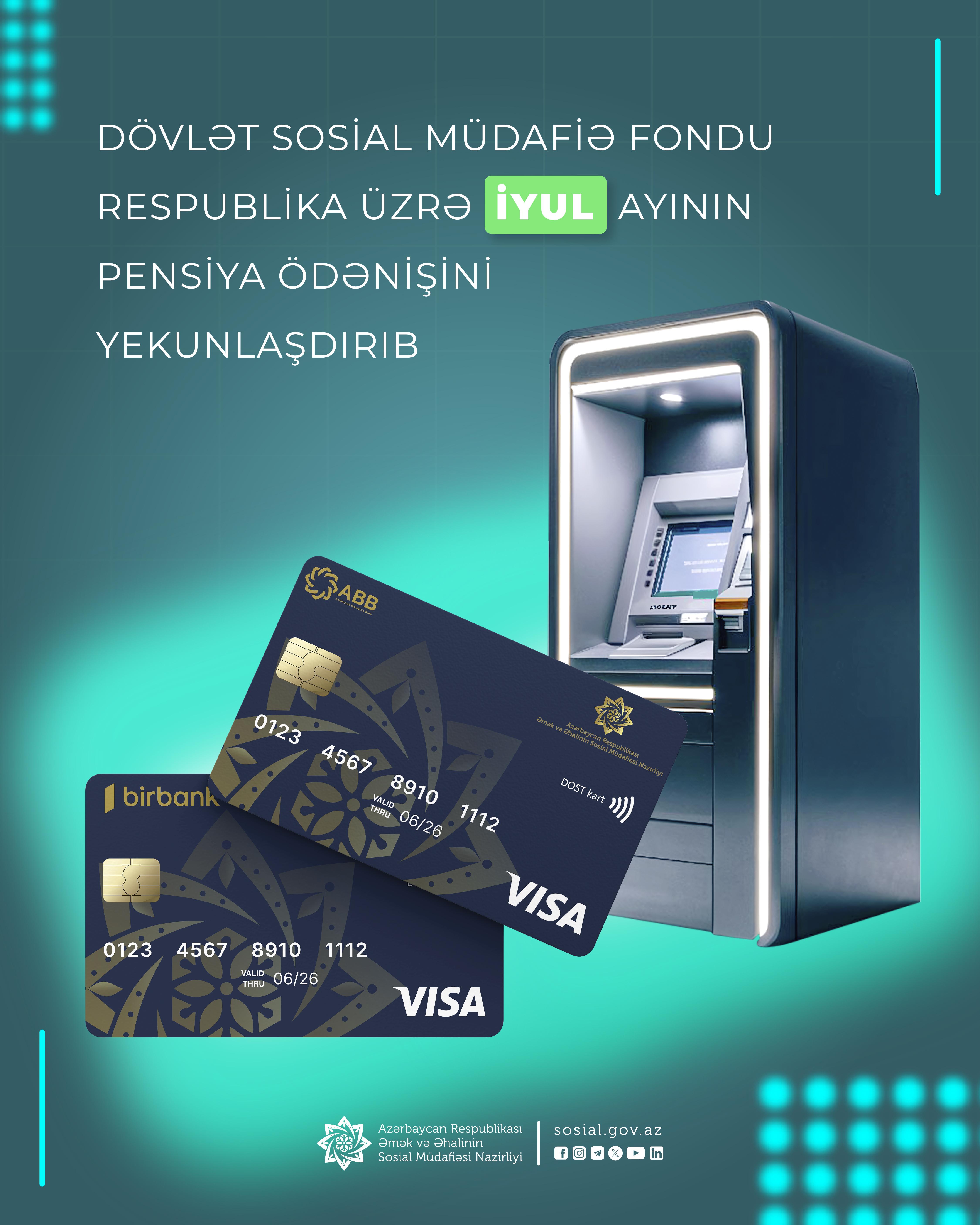 On July 11, pensions for persons living in Baku and Sumgayit, Absheron and Nakhchivan Autonomous Republic, and today in the regions of our country, as well as pensions assigned on preferential terms, were paid.