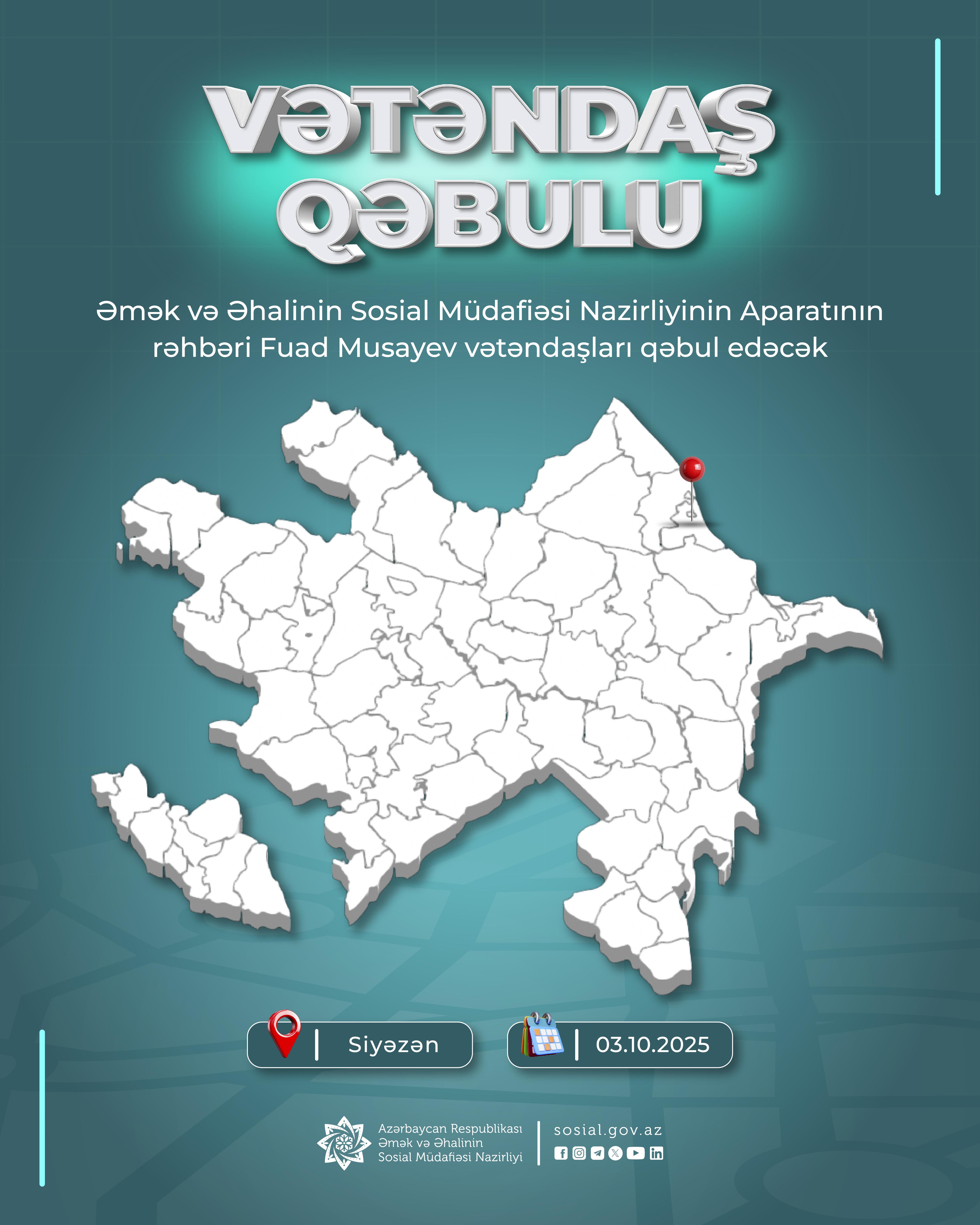 Head of the Administration Fuad Musayev will receive citizens in Siyazan and Shabran