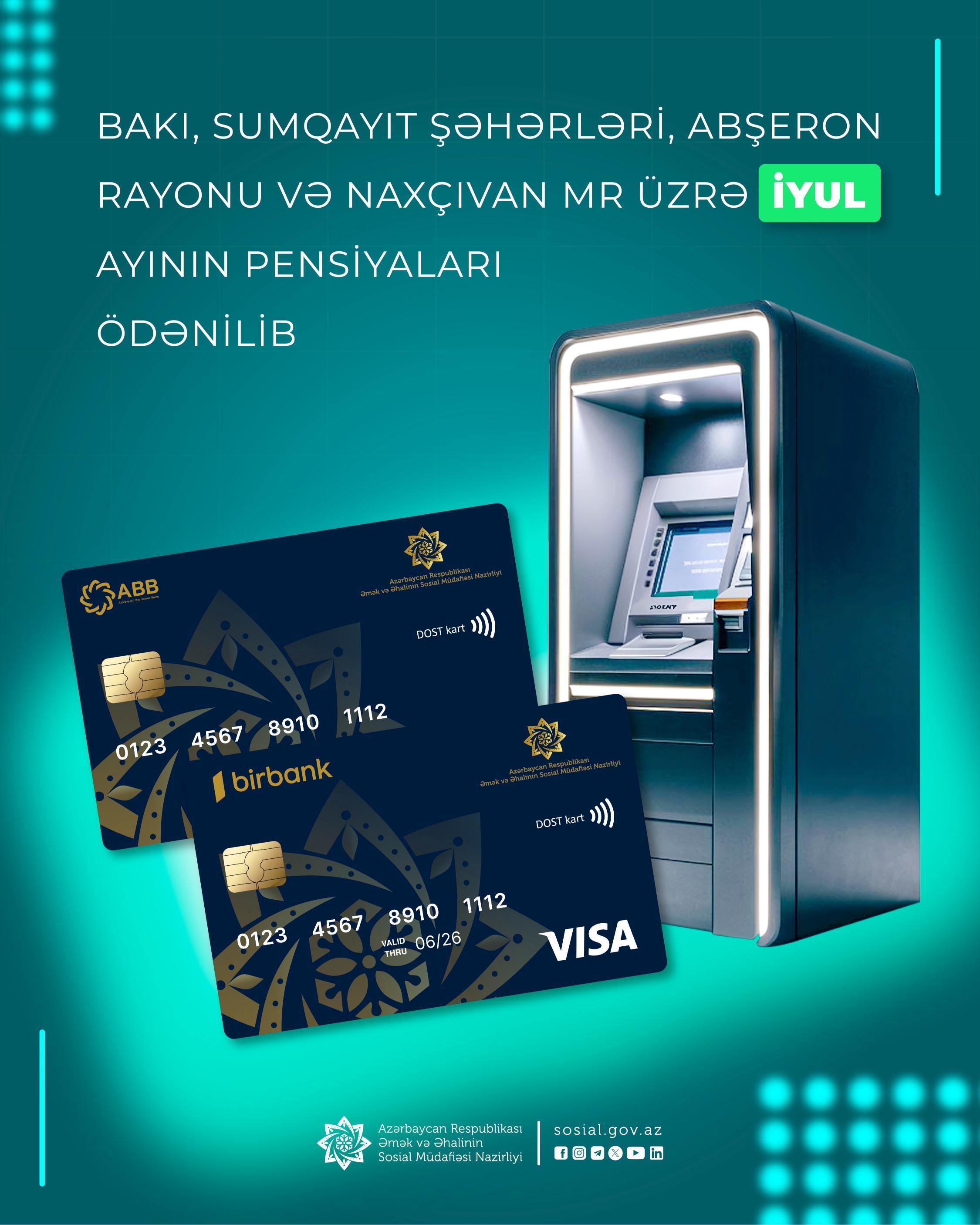 Pensions for July were paid for Baku, Sumgayit, Absheron and Nakhchivan Autonomous Republic