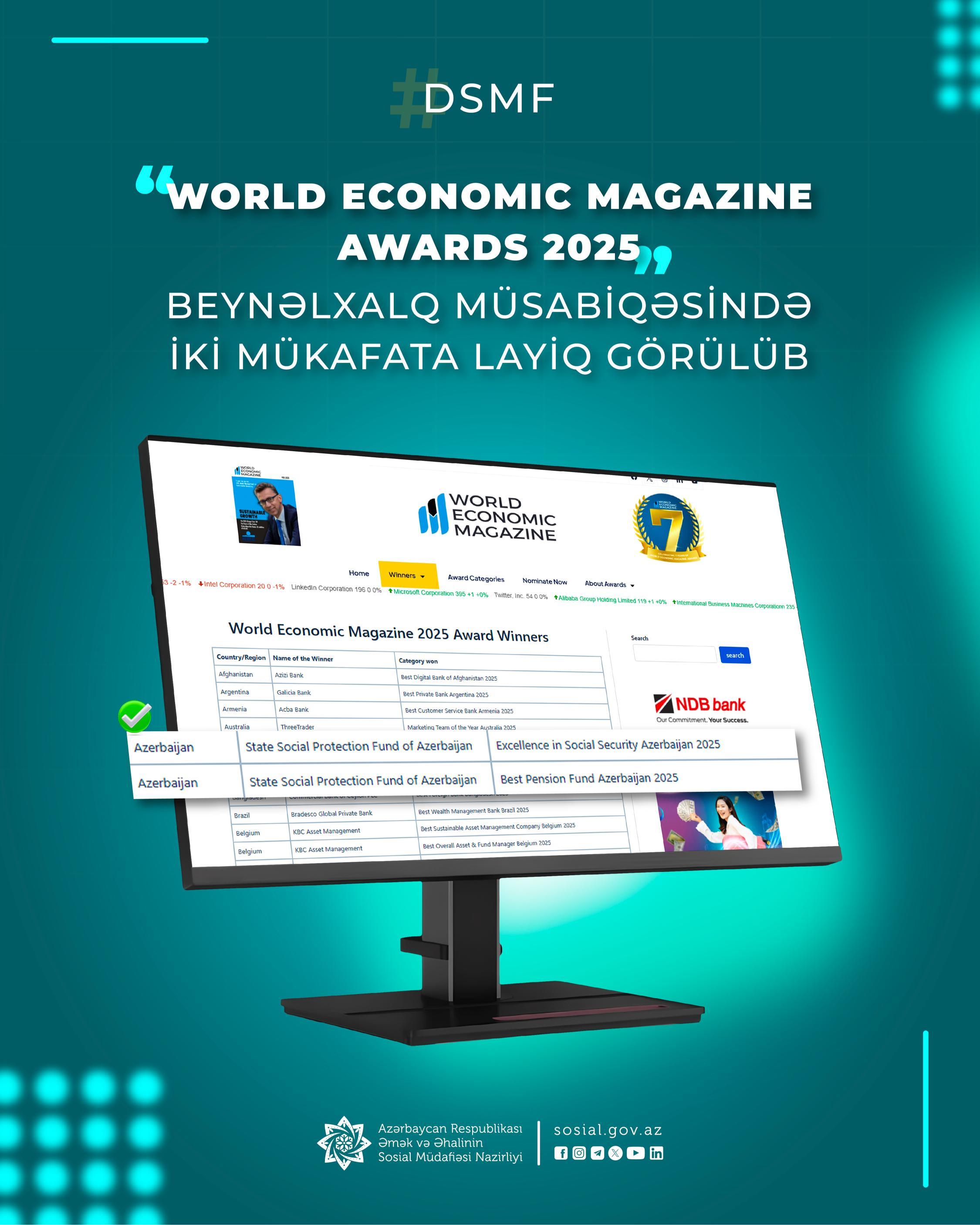 State Social Protection Fund won two awards at the "World Economic Magazine Awards 2025" international competition
