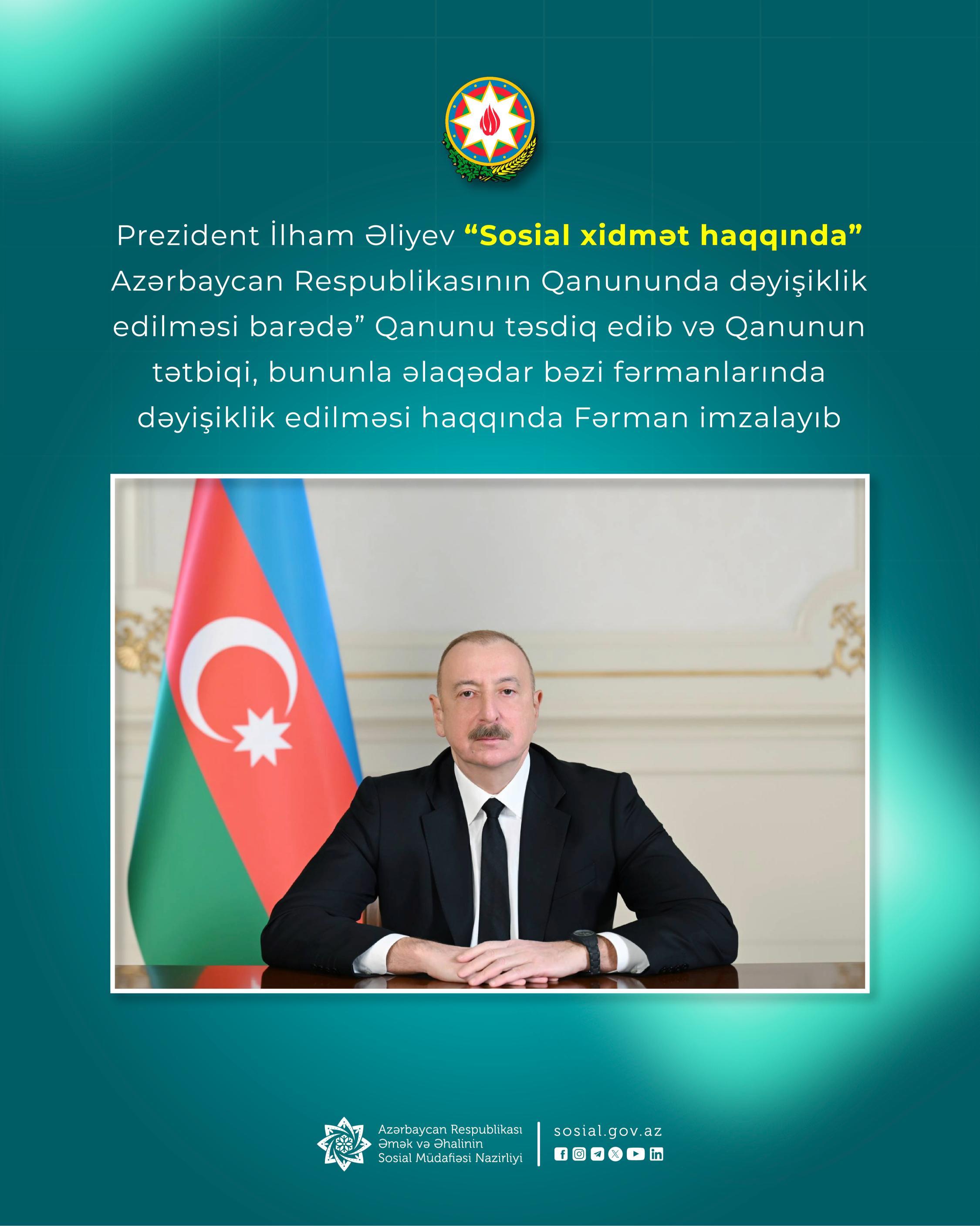 New legislative acts signed by President Ilham Aliyev allow for further expansion of the scope of social services