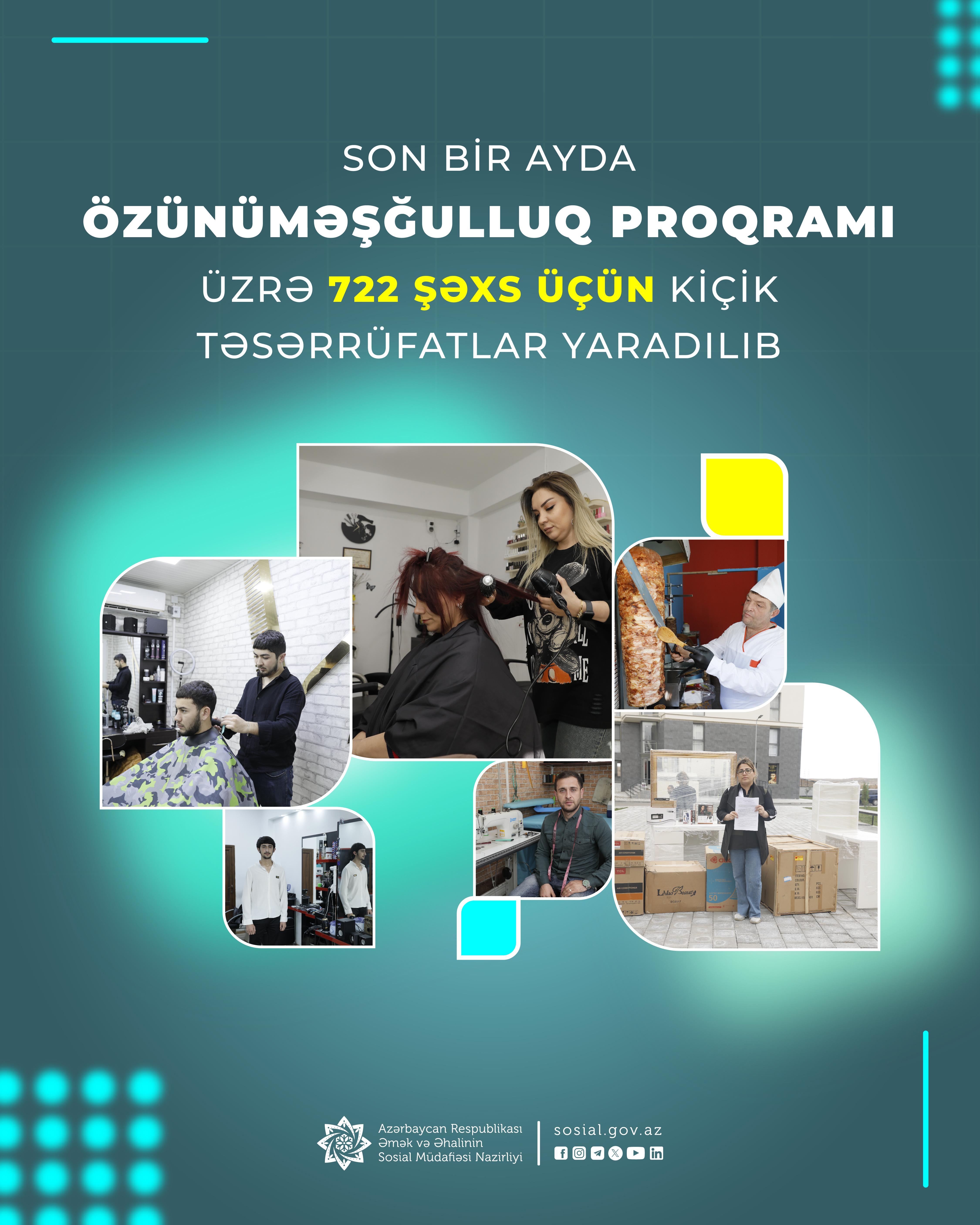 In the last month, small enterprises have been established for 722 individuals under the self-employment program