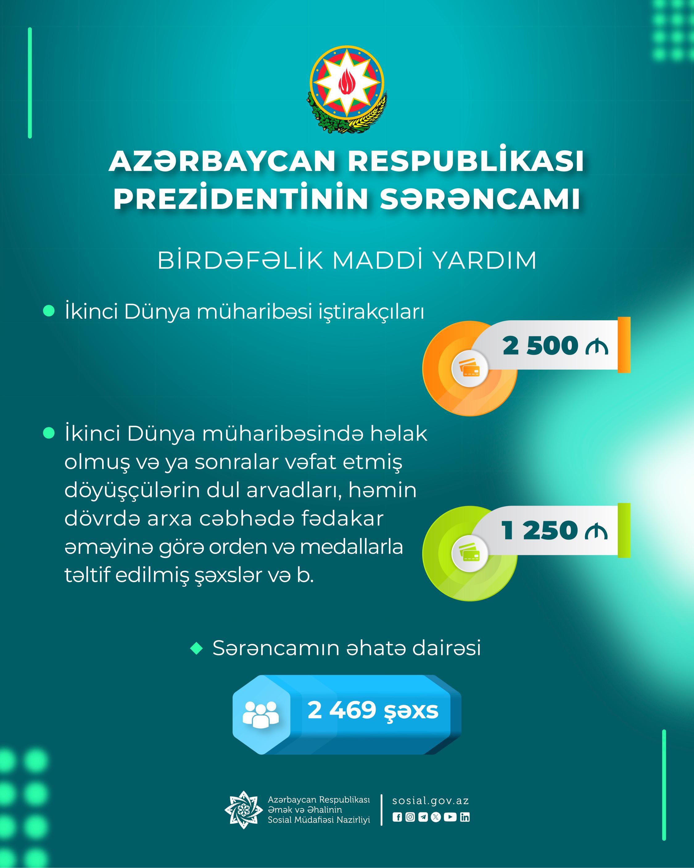 With the new order of President Ilham Aliyev, one-time financial assistance will be provided to participants of the Second World War and other relevant individuals